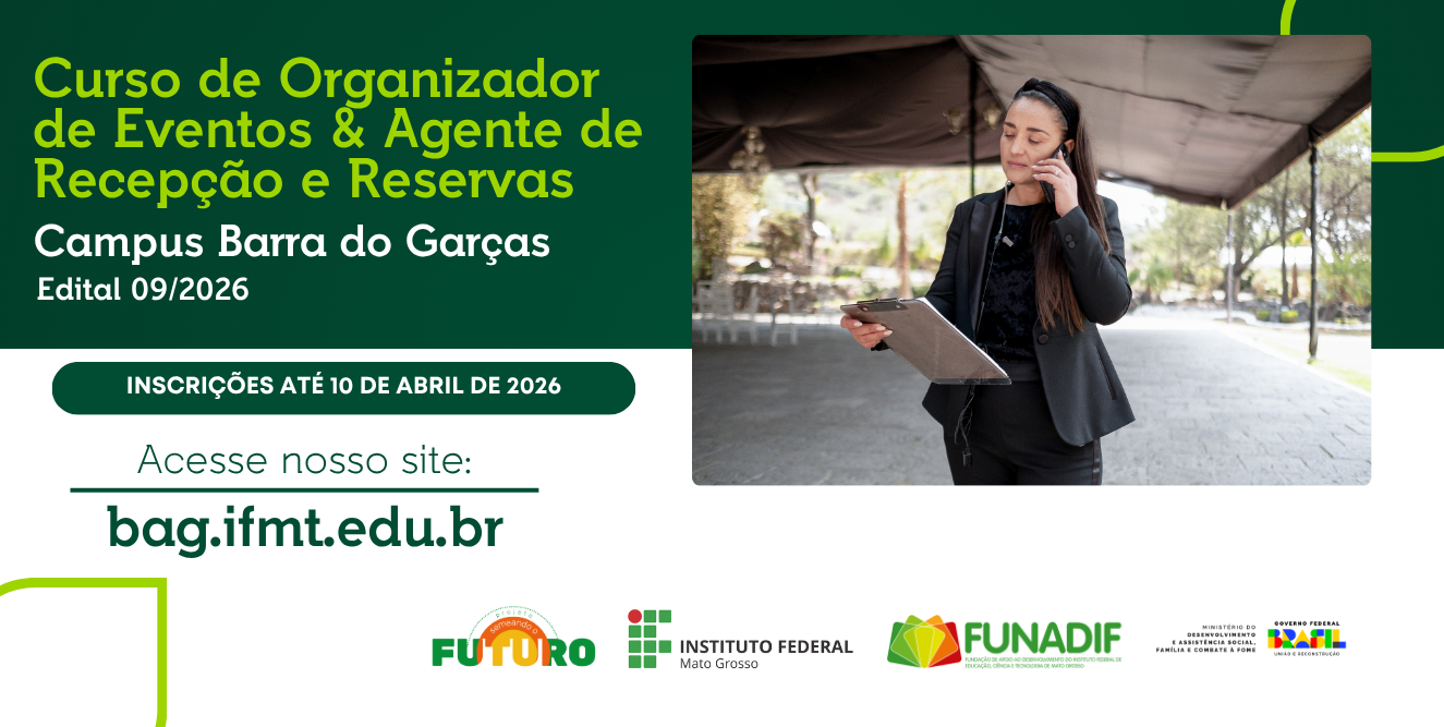 IFMT Barra do Garças abre inscrições para cursos de Organizador de Eventos e Agente de Recepção e Reservas
